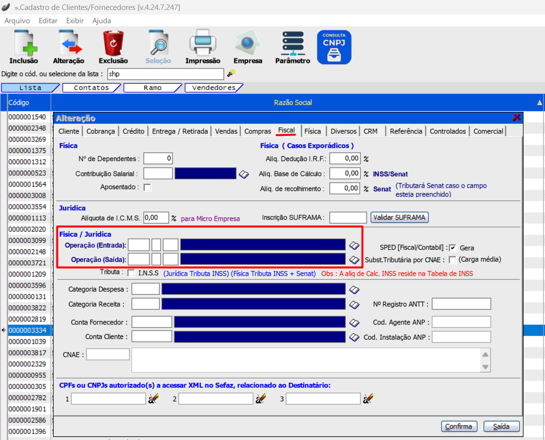 CFOP cadastrada no Cliente: Caso o produto não tenha uma CFOP vinculada, o sistema utilizará a CFOP definida no cadastro do cliente.